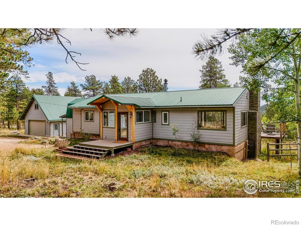 Experience the beauty of mountain living in the scenic community of the Bar-K Ranch. Surrounded by quaking aspens, accessible nat'l forest and community meadows & lakes, embrace true mountain living just 35 minutes from the world class city of Boulder. Enjoy the sunrise from a spacious deck and then head to nearby Indian Peaks Wilderness for spectacular hiking, skiing, or 4WDing. This well-maintained home provides single-level living across 1,248sqft plus a 240sqft finished flex space above the garage. The functional layout offers a spacious living room with hardwood floors, an awesome wood stove, and scenic views of the valley and surrounding pines. The kitchen is designed for both everyday use and entertaining, with custom copper hardware, a large copper sink, Bertazzoni stainless steel appliances, maple soft-close cabinets, and quartzite countertops. The large island provides lots of working counter space. The primary suite features abundant natural light, valley views, and a bathroom with a cast iron bathtub and walk-in closet. The second bathroom boasts a river rock steam shower w/ a rain showerhead and heated floor. The laundry space offers a Miele washer and dryer and additional storage. Set on 2 spacious acres, the property combines natural beauty and practicality, including a garden space w/ and a fenced area for dogs or horses. The circular driveway and large garage can accommodate all the toys for active living. Evenings can be enjoyed around the fire ring. There's a bonus 120sqft, 2-story workshop with a climbing wall and workbench. A voluntary $120/yr association membership grants access to over 50 acres of land including horse stables, pastures, gardens, and three trout-stocked lakes. Enjoy a convenient equine lifestyle in this diverse neighborhood. The septic system is designed for 3 bedrooms allowing for future expansion. This property combines natural splendor with practical amenities for ideal mountain living.